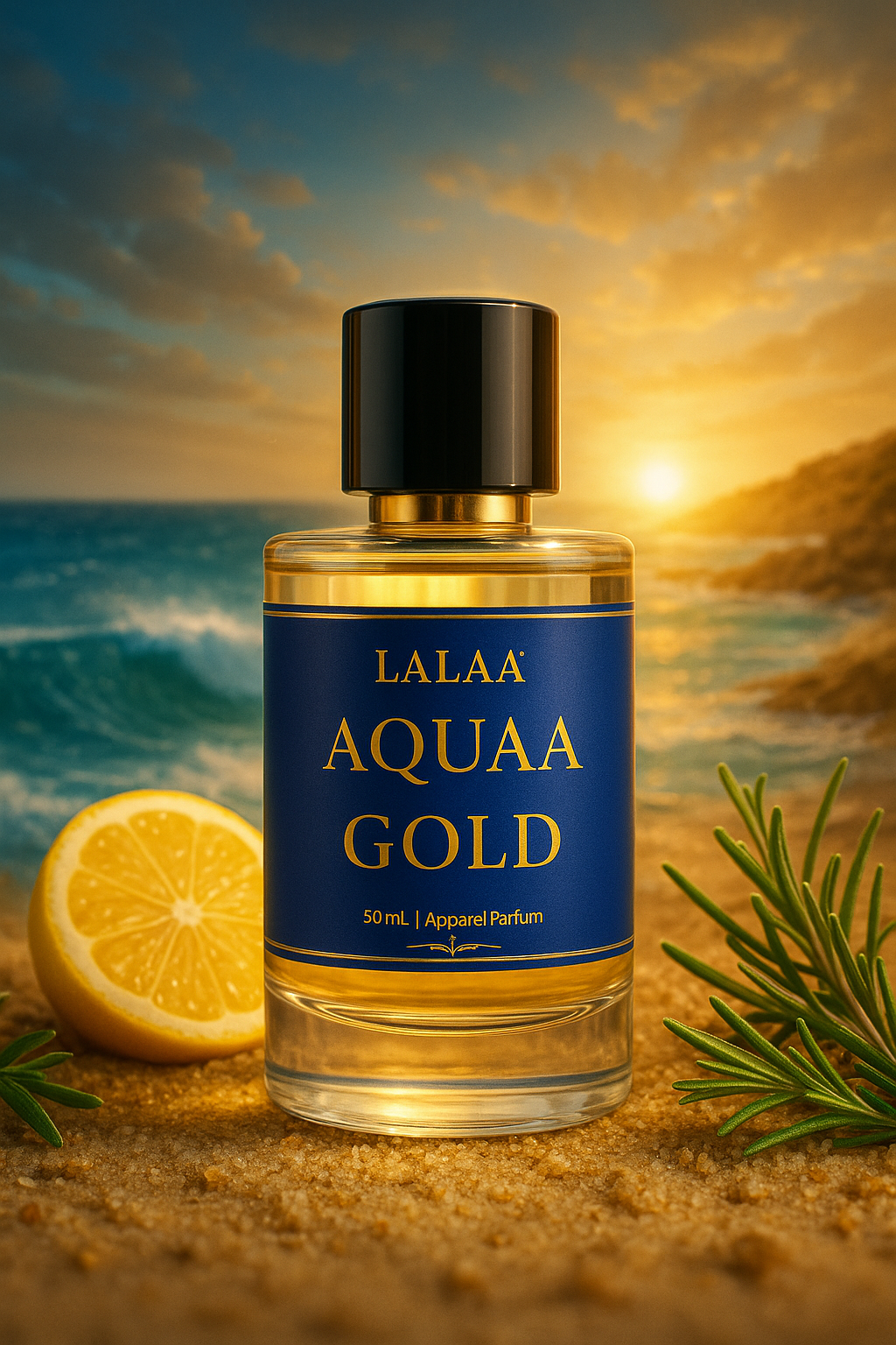LALAA AQUAA GOLD Apparel Unisex Perfume – Long Lasting Eau de Parfum with Citrus, Sea & Woody Notes – Premium Fragrance for Men & Women – 50ml